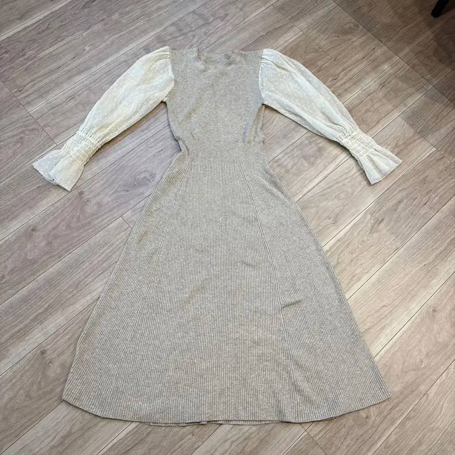 리브 니트 퍼프 슬리브 원피스