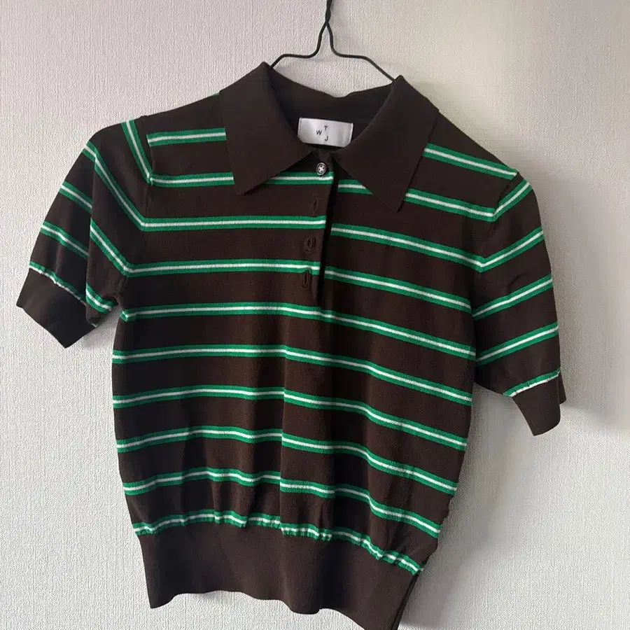 TWJ 스트라이프 반팔 피케 셔츠 브라운/그린
