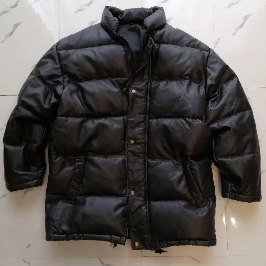 귀한 사이즈 XL 램 가죽 두툼한 다운 자켓 양가죽 블랙 천연 가죽