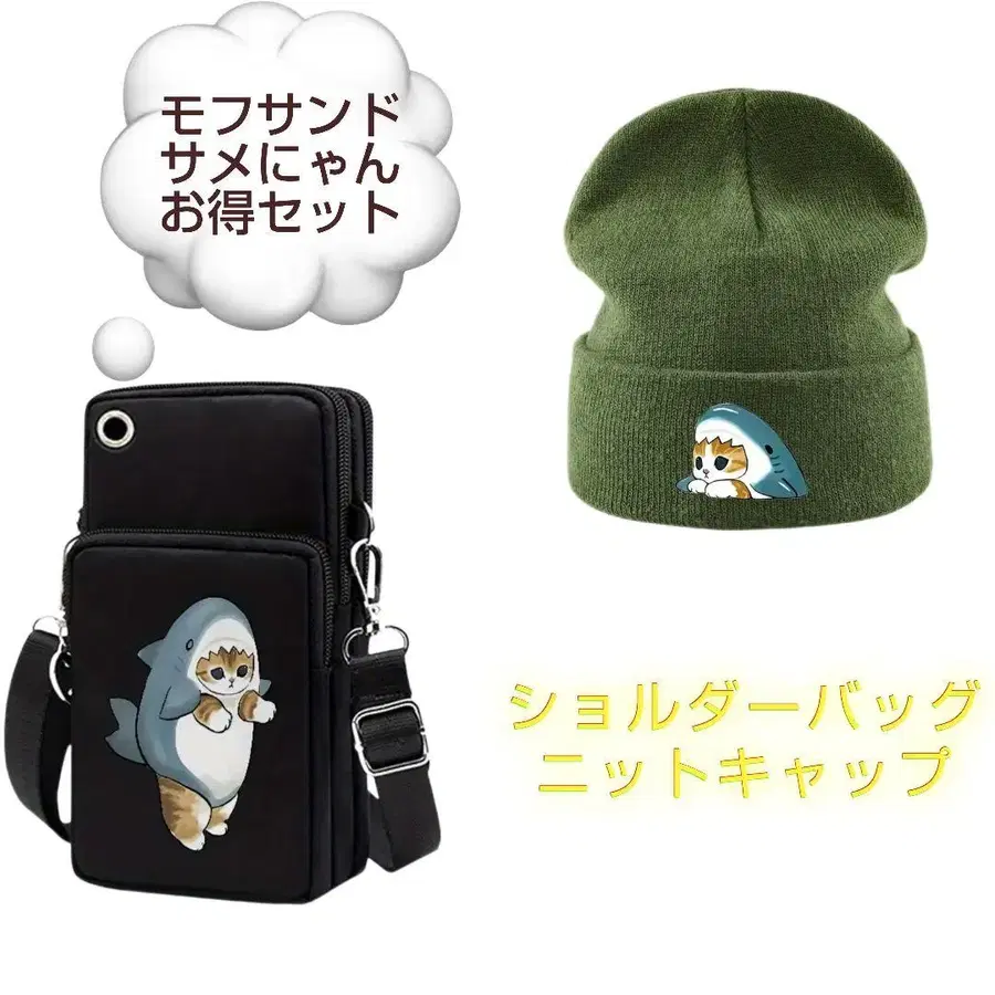 모프 샌드 숄더백과 니트 캡 세트