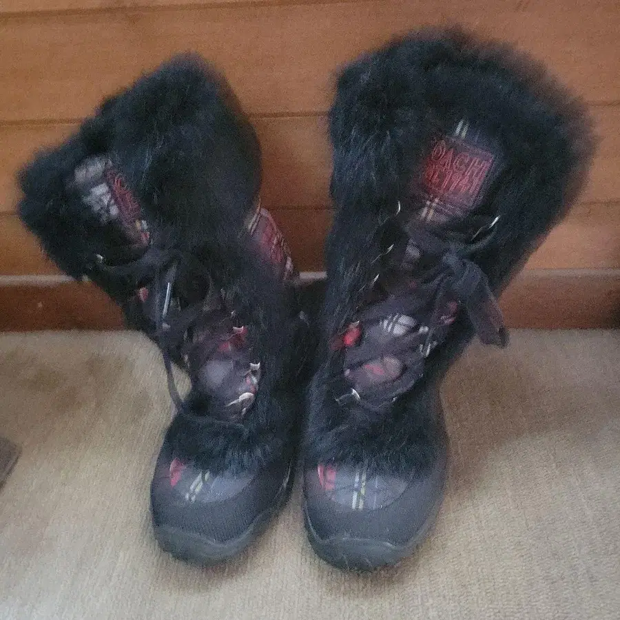 퍼가 달린 체크 무늬 캐주얼 부츠