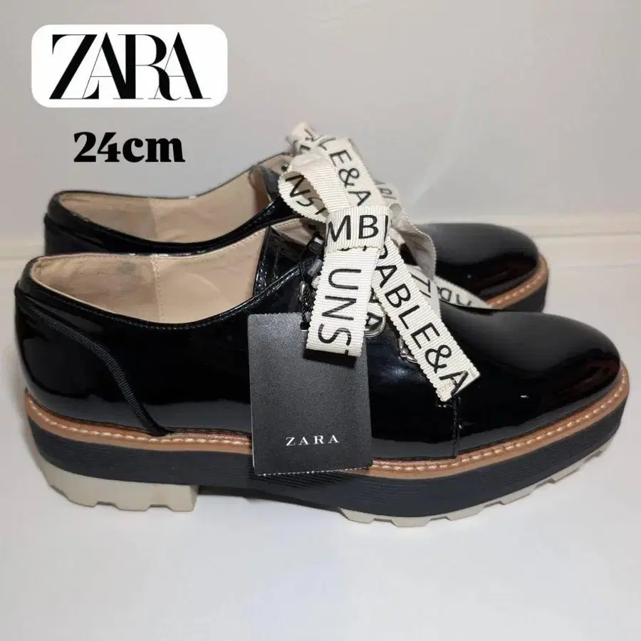 [ 새상품 ] 인기 자라 블랙 통굽 로퍼 24cm