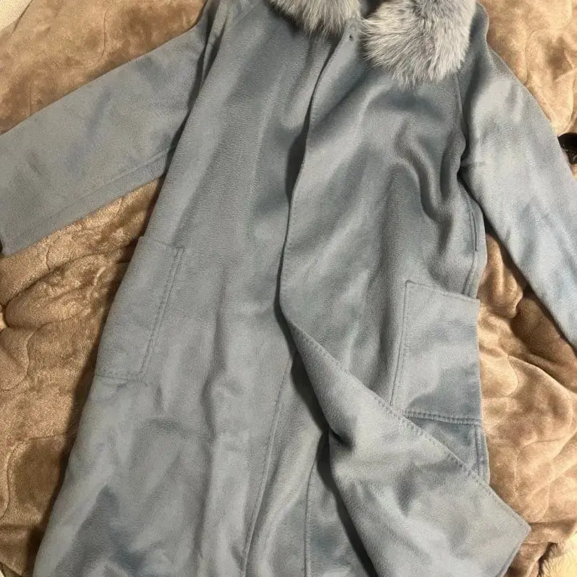 파격 가격 12/29까지 라이트 블루 후드 부착 롱 코트