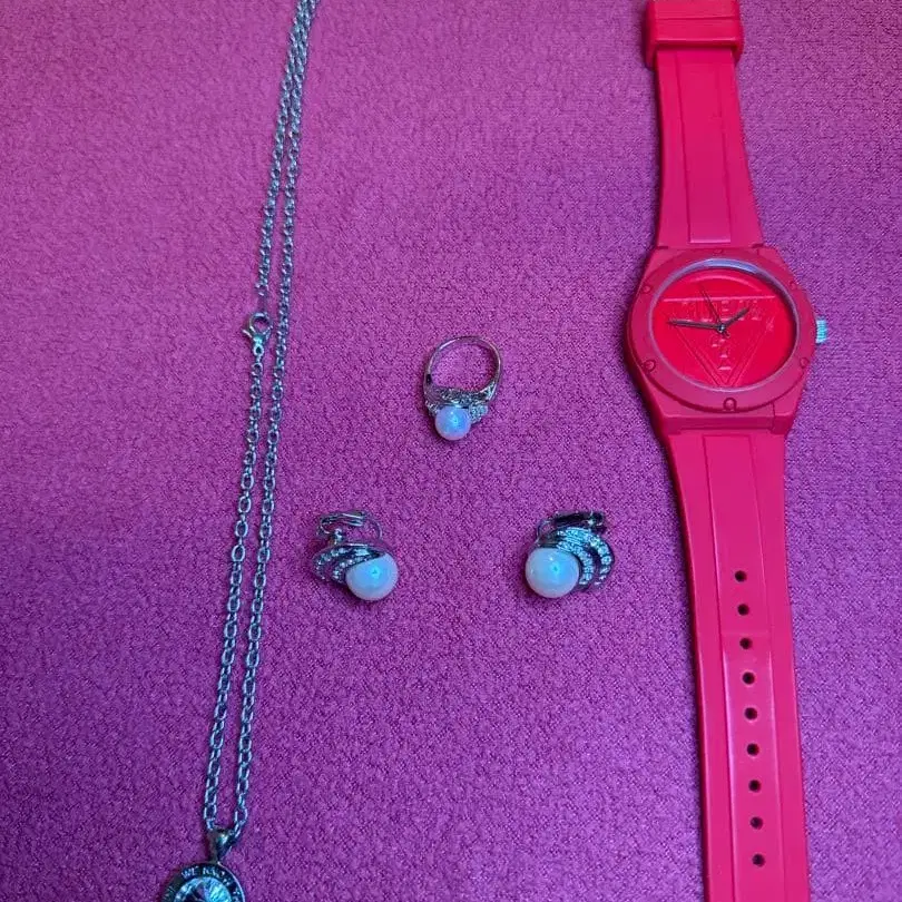 게스 쿼츠 시계 액세서리 세트 목걸이 귀찌 반지