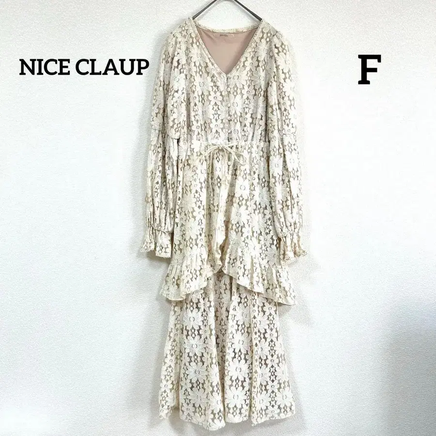 NICE CLAUP 플라워 레이스 롱 원피스 허리밴딩 걸리시