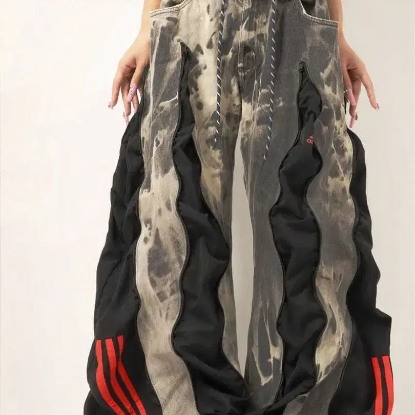아디다스 리메이크 4지퍼 데님 타이다이 패턴 와이드 데님 L 101187