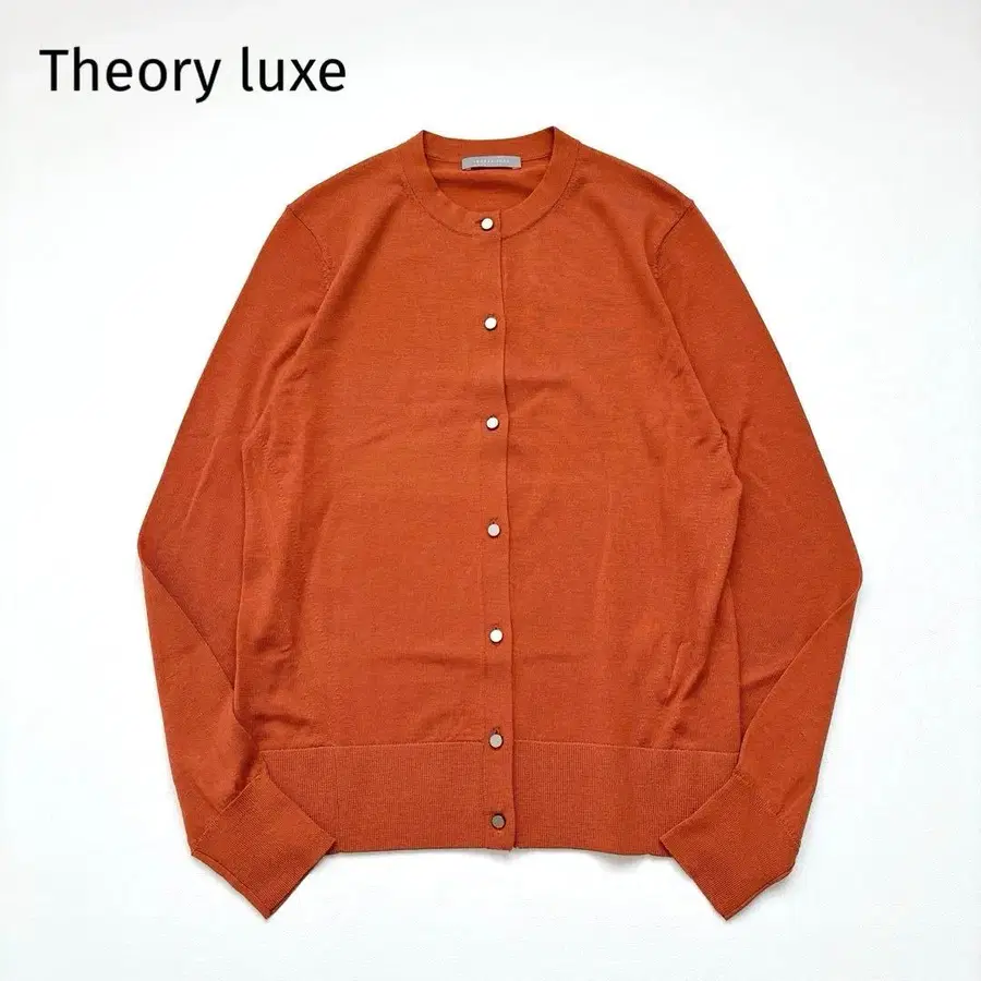새상품급 띠어리 럭스 크루넥 가디건 메탈 버튼 오렌지 38