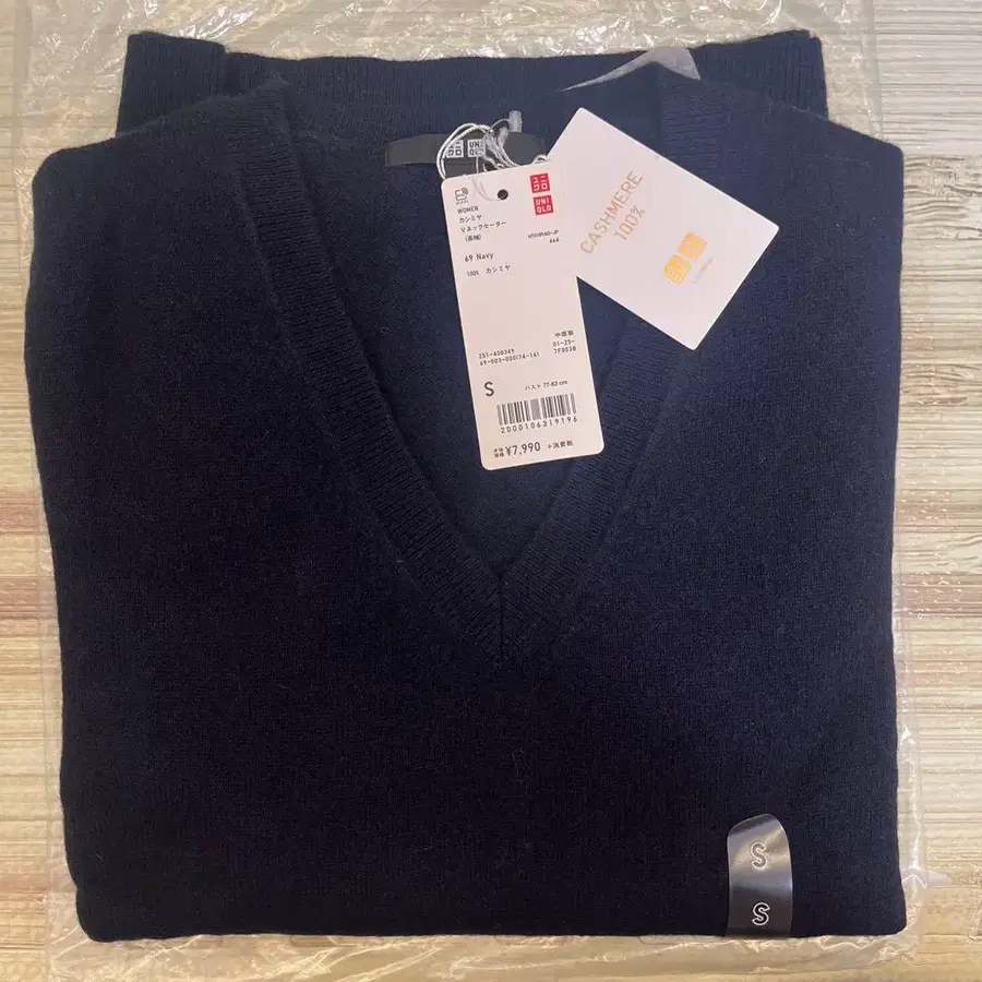[택 포함 새상품] 유니클로 캐시미어 100% 스웨터 V넥 네이비