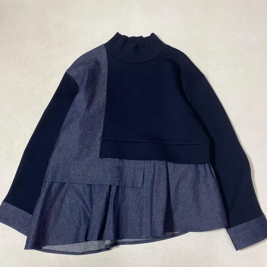 중간 두께의 종이상자 니트와 이소재를 도킹한 디자인 풀오버입니다.