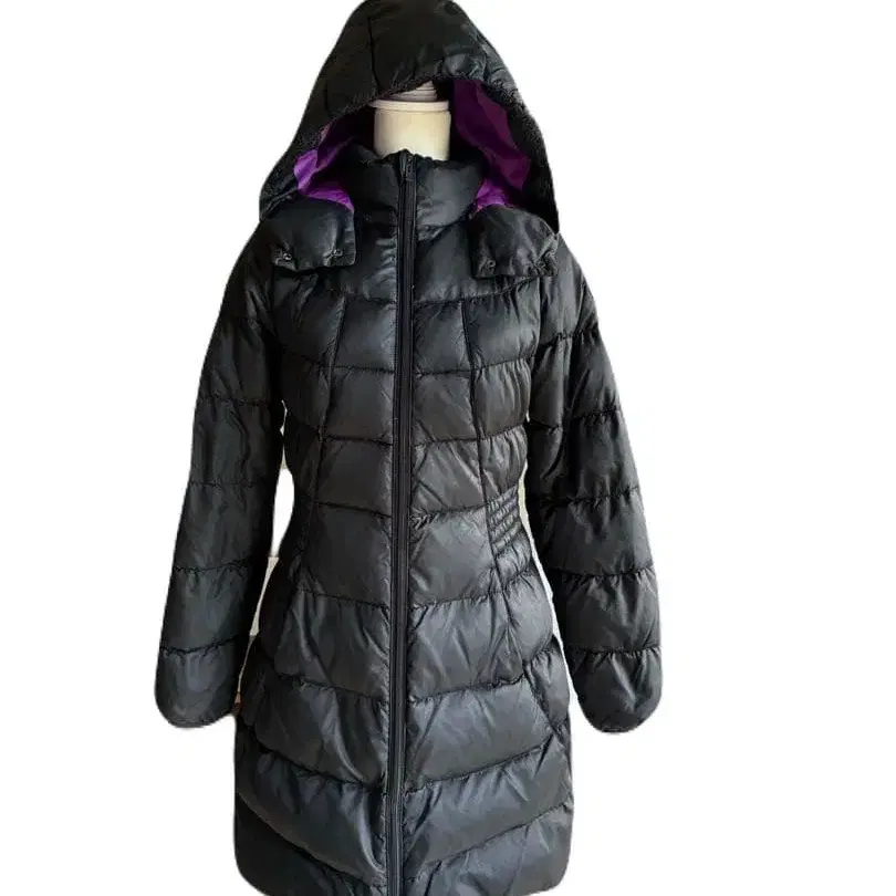 PUMA 블랙 다운 코트 무릎 위 기장 후드 부착