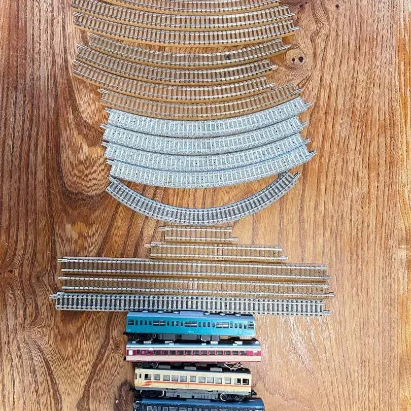 N 게이지 철도 모형 차량 5량과 레일 세트