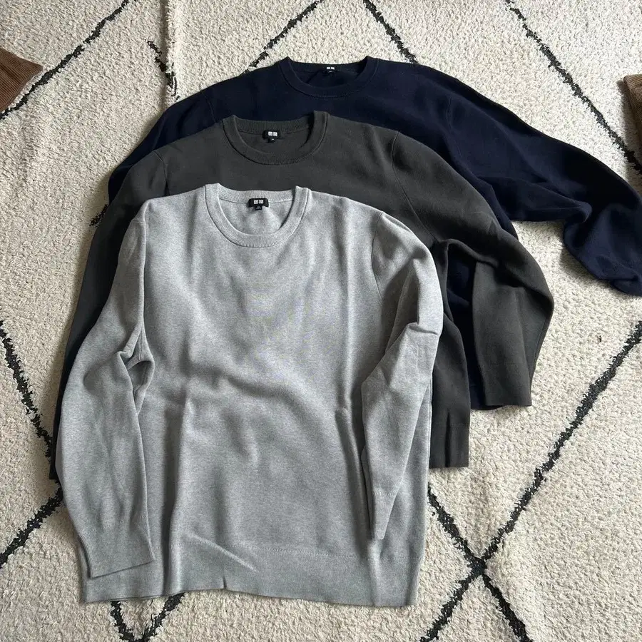 유니클로 워셔블 밀라노 리브 크루넥 스웨터 3개 세트