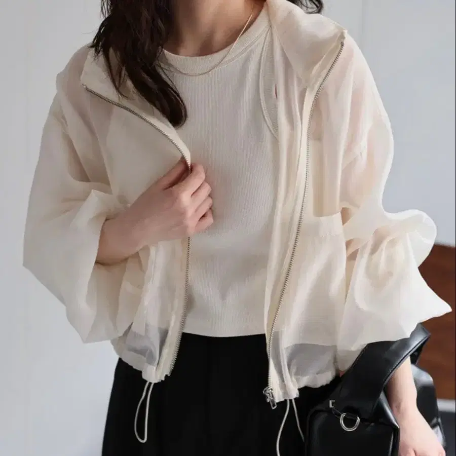 시어 스탠드 숏 블루종 메쉬 블루종 아이보리