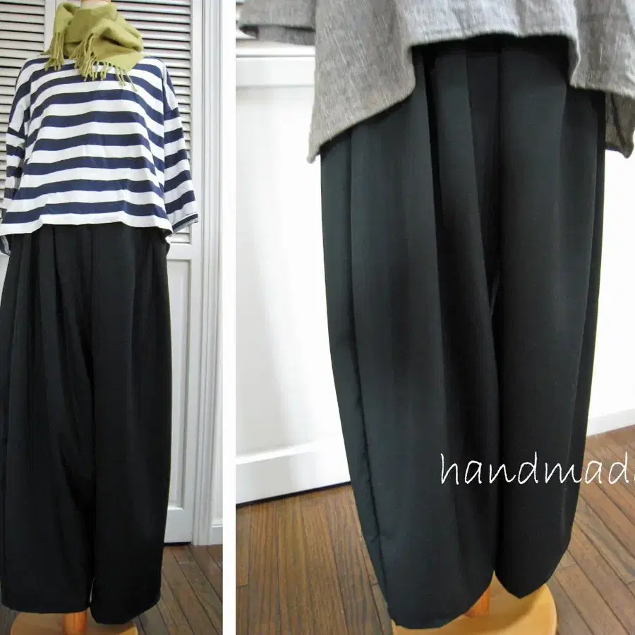 넉넉한 폭으로 심플하고 멋진 실루엣을 연출했습니다. 안감 없음.