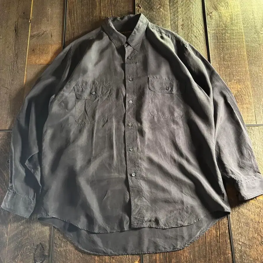 구제 의류 흑먹색 실크 셔츠 긴팔 테로감 트로감 XL 오버 사이즈 블랙