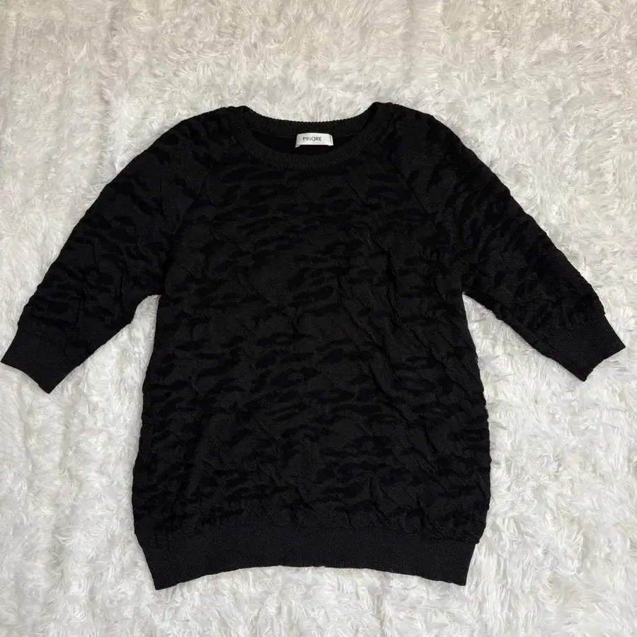 PINORE 여성용 7부 소매 니트 울 올 패턴 블랙 리브 피노레