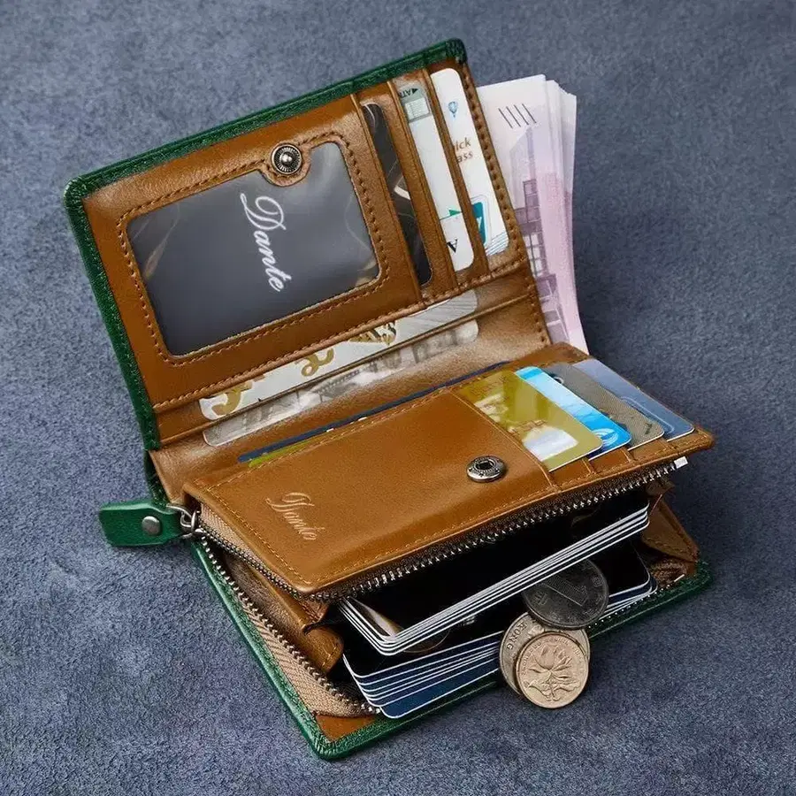 • 일비종떼 그린 가죽 이단 접이식 지갑