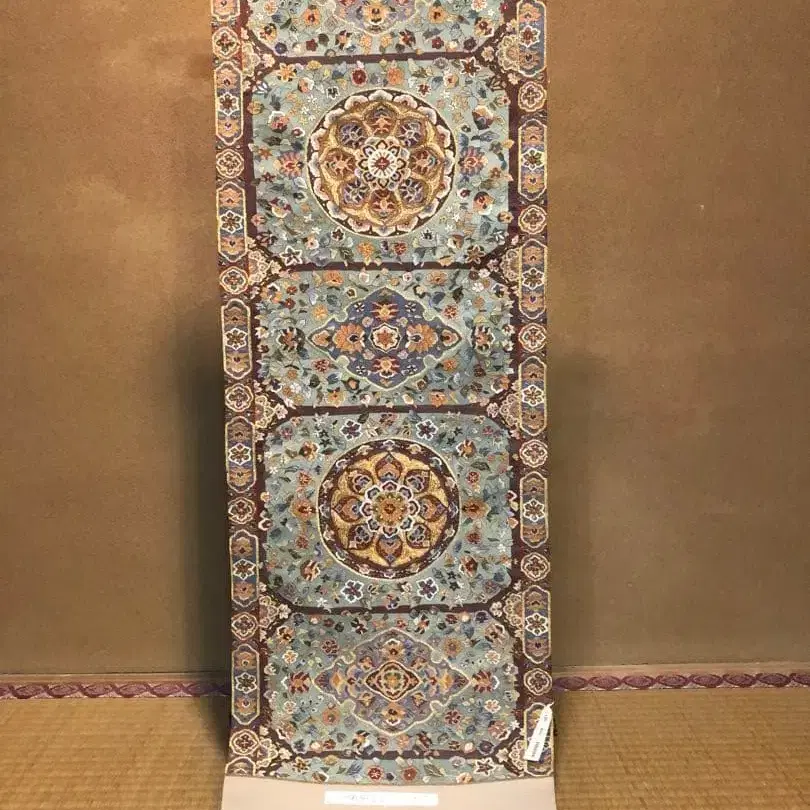 소매 참고 상정 가격 - 550만 엔 미재단 상품, 중고품 이번 명철명 봉투 오비는, 미술상 분이 명철명 봉투 오비의 최고봉으로서 오랜 세월 동안 문외한 출입 금지 취급으로 소중히 보관, 저장해 오신 초일품의 미술적 가치가 있는 통 오비입니다. 저희 회사가 옛날에 양도받은 상품입니다. (짜여진 그대로의 통 상태입니다.) 또한, 어디까지나 개인가정에서의 완전한 보관품이오니 신경질적인 분은 대단히 죄송하지만 삼가해 주시기 바랍니다. 그리고 고가이며 초일품인 상품이므로 트러블의 원인이 되지 않도록 반품은 단호히 거절하겠습니다. 명철명 봉투 오비로 짜여진 본 작품은 연속하는 원문, 마름모 문양을 주제로 당나라 꽃을 정교하게 배치한 우아한 디자인입니다. 원문은 중국 고대에 하늘, 우주의 순환을 상징하며 왕조 문화 속에서 길상과 번영을 나타냈습니다. 차분한 청자색을 기조로 적토(빨간색 흙), 남색, 금실을 효과적으로 사용한 배색은 송, 명나라 시대 회화 및 공예와 통하는 격조를 담아, 정적 속에서 화려함을 담은 일품입니다. 또한, 원문, 마름모 문양은 격이 높은 고전 문양 중 하나로 포멀한 봉투 오비로서 호몬기, 쓰케사게, 이로무지 등에 격조를 더해 화려한 장면에 어울리는 조합이 됩니다. 이 명철명 봉투 오비는 전체 무늬이므로 태고 매기 외에 여러 가지 변형 매기도 가능하여 매우 유용합니다. 더불어 부모 자녀 삼대(할머니, 어머니, 손녀)가 함께 사용하시고, 사용하지 않으실 때는 미술 공예품으로서 햇볕에 말리는 것을 겸하여 자택, 가게, 회사 등에서 동양과 서양의 게스트룸 공간에서 사용하실 수 있습니다. 오비 길이 - 1장 1척 3촌 (425cm) 오비 폭 - 8촌 5분 (32cm) 오비 무게 - 약 550g ◎ Chat GPT (AI 인공지능)를 사용하여 진명주 紬 호몬기에 명철명 봉투 오비를 착용한 이미지를 작성했습니다. 코디네이트 참고가 되시면 다행입니다. 또한, 미술 공예품으로서 일본식 방과 게스트룸에 장식해 보았습니다. ◎ 또한, 구매해 주셨을 때 이 명철명 봉투 오비는 미재단 상품이므로 정중한 수작업을 해드리므로, 재단 기간은 30일 정도 필요하오니 양해 부탁드립니다.