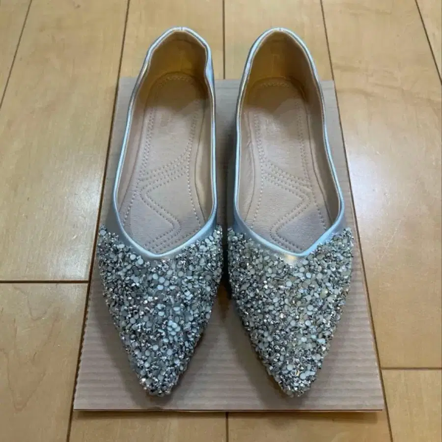 비쥬 장식 실버 플랫슈즈
