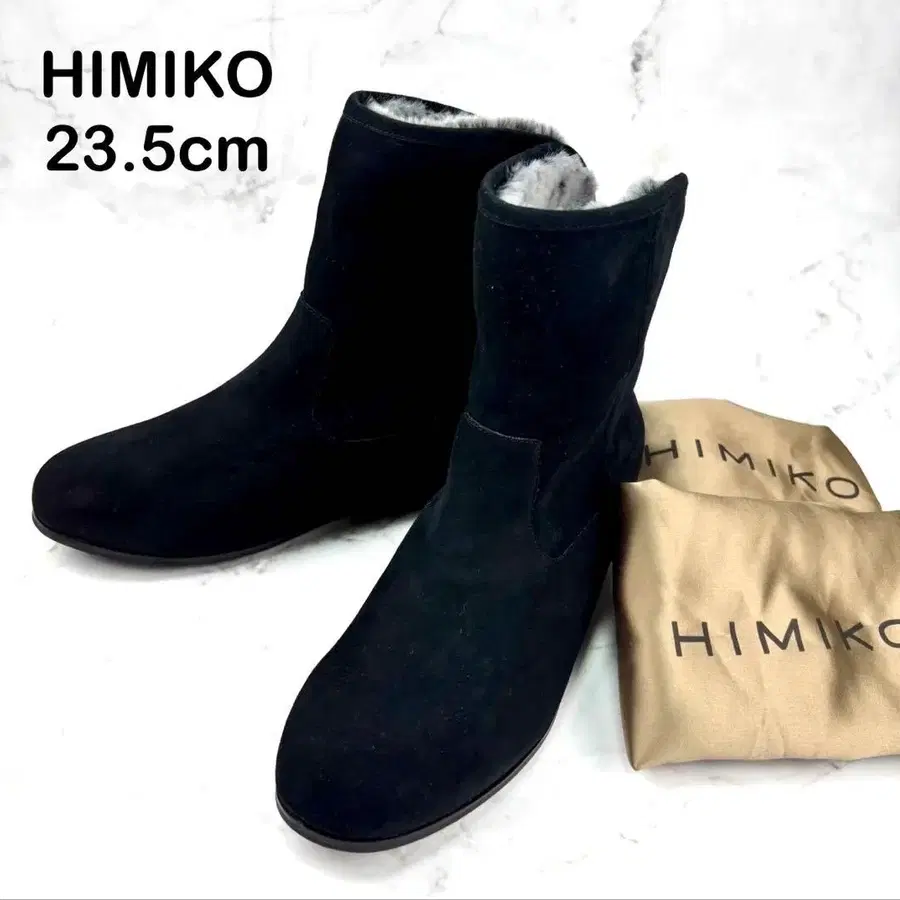 [새상품급] HIMIKO 2way 부츠 무스탕 23.5 블랙 스웨이드