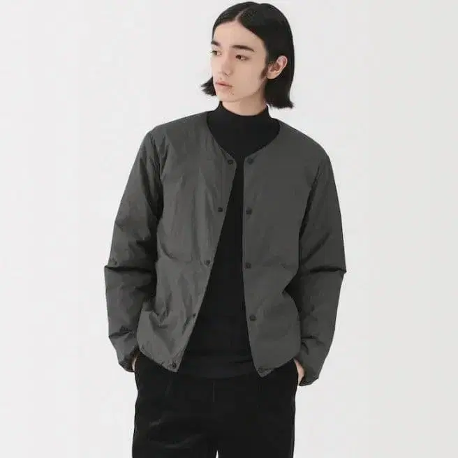 새상품 무인양품 발수 다운 포켓터블 노카라 자켓 다크 그레이 L