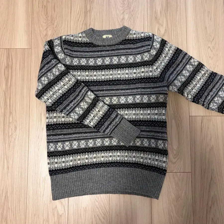 BEAMS HEART 노르딕 무늬 스웨터 S 그레이 울 100%