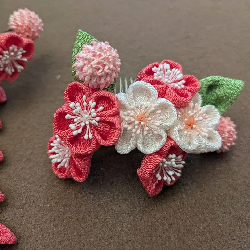 조각보 머리 장식 머리핀 3개 세트 거의 새상품