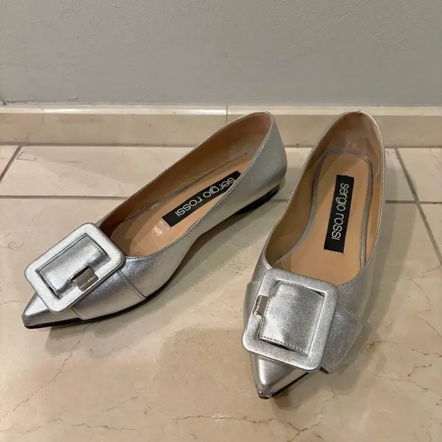sergio rossi 실버 플랫슈즈 22.5cm