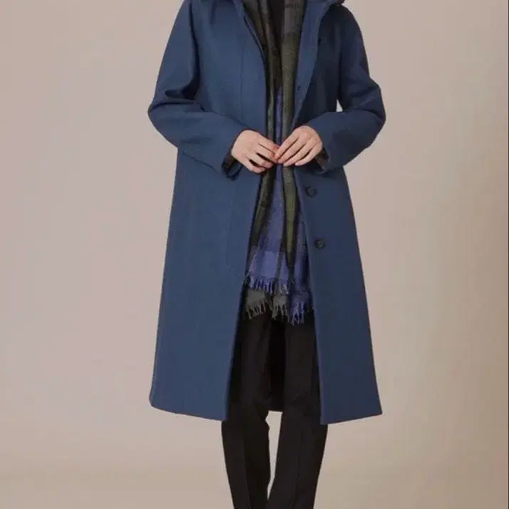 매킨토시 런던 울 더블 크로스 후디드 코트 네이비