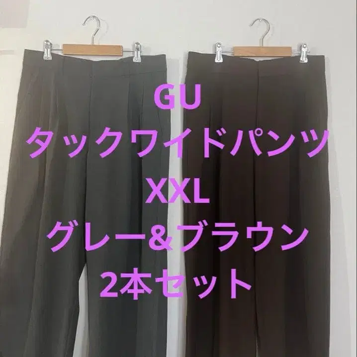 미사용품 지유 GU 턱 와이드 팬츠 XXL 그레이&브라운 2개 세트 일괄
