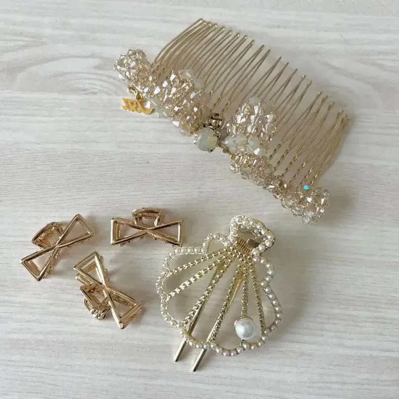컴플렉스 비즈 리본 헤어콤과 클립 세트