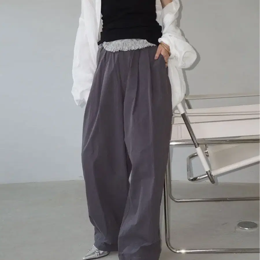 츄클라 chuclla 턱 개더 벌룬 와이드 팬츠