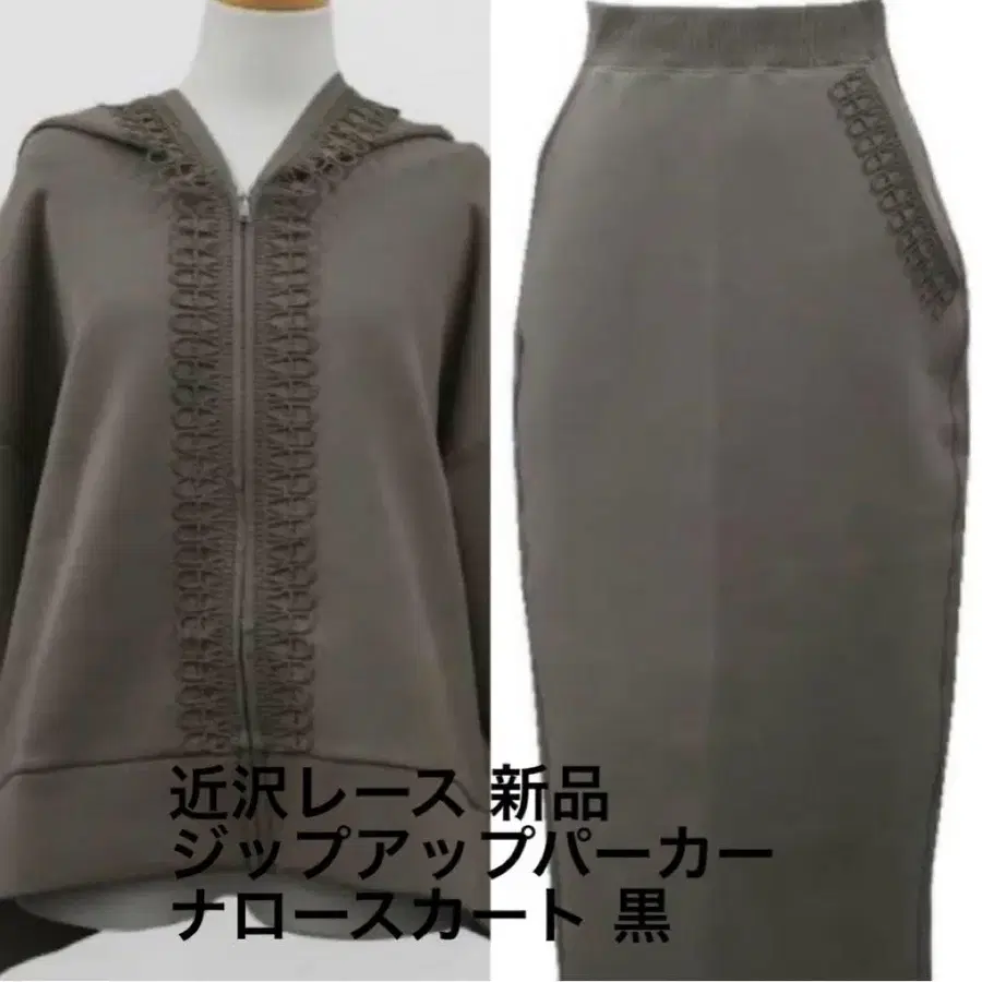 자동 번역되었어요. 원문보기친자와 레이스의 집업 후드티와 내로우 스커트 세트입니다.