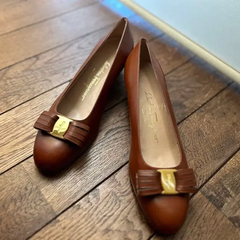 페라가모 브라운 리본 포함 펌프스 8.5 C 미사용 새상품