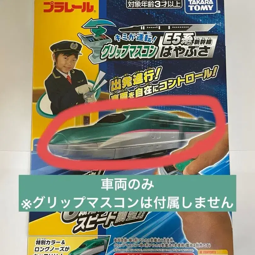 [ 네가 운전해! 그립 마스콘 E5계 신칸센 하야부사 ]의 그립 마스콘을 목적으로 구매했기 때문에, 불필요한 차량 부분을 판매합니다. 동력 섀시는 보통품으로 교환했습니다. 차량은 동력 부분을 교환한 것뿐이므로 거의 미사용품이지만, 조금 저렴하게 판매합니다. 또한 보통 상품의 하야부사와 비교하여 더 리얼한 롱 노즈인 것이 특징입니다.