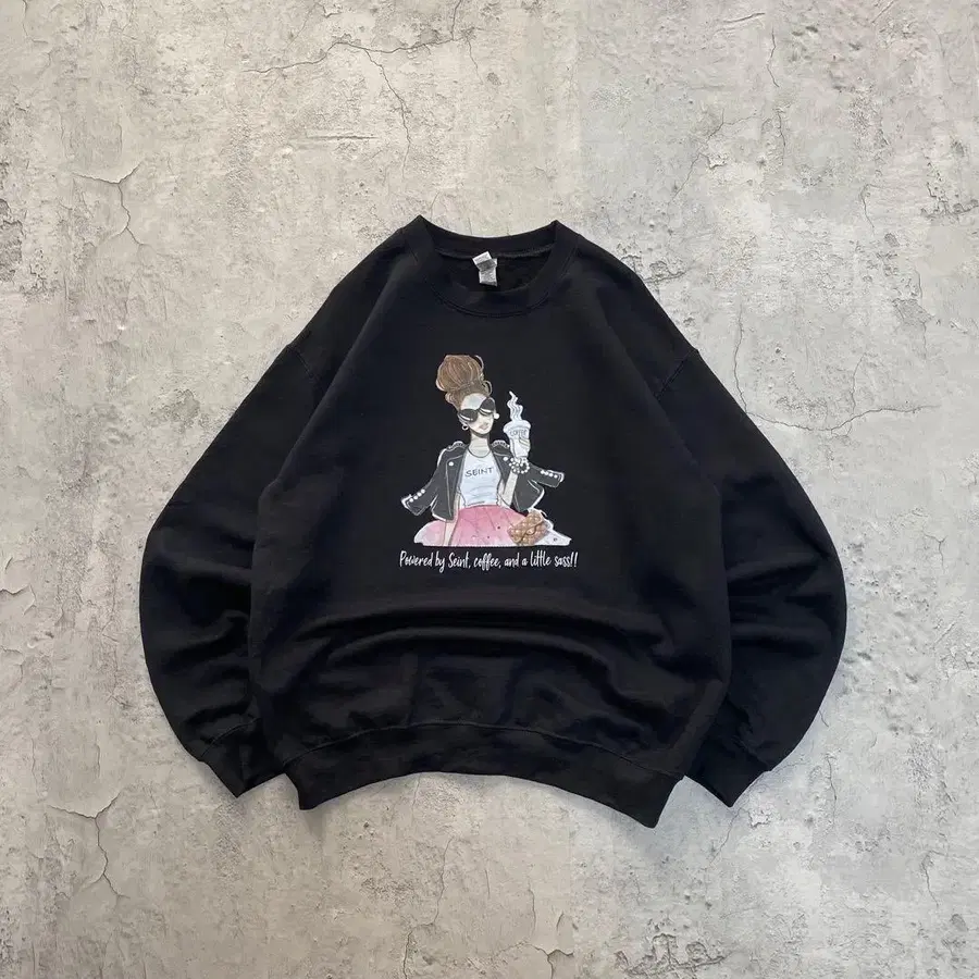 길단 USA 구제 의류 여자 커피 아트 프린트 맨투맨 블랙
