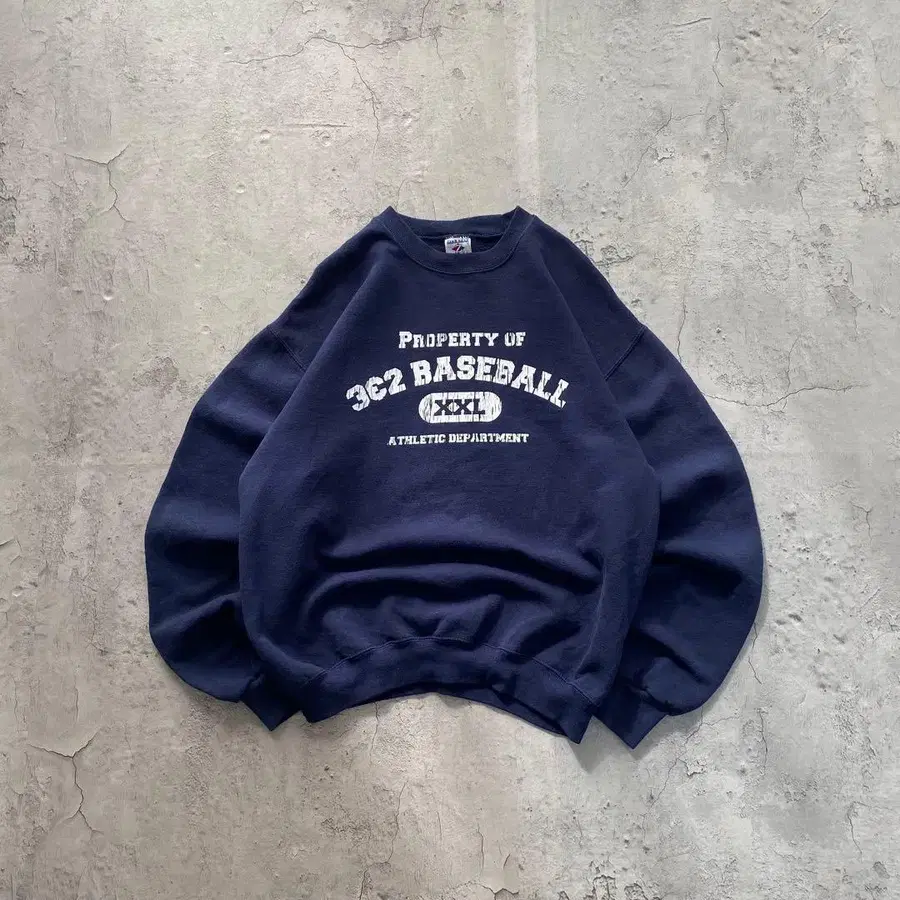 90's~ 저지 USA 구제 의류 삼단 프린트 맨투맨 네이비