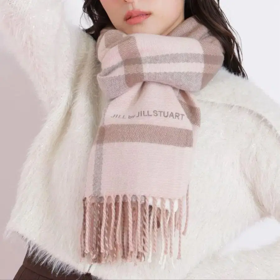 [ 새상품 ] 질 바이 질 스튜어트 자수 로고 체크 스톨 모카