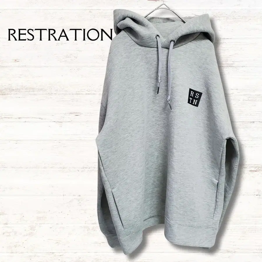 RESTRTION 후드 맨투맨 그레이 L 후드 부착 로고