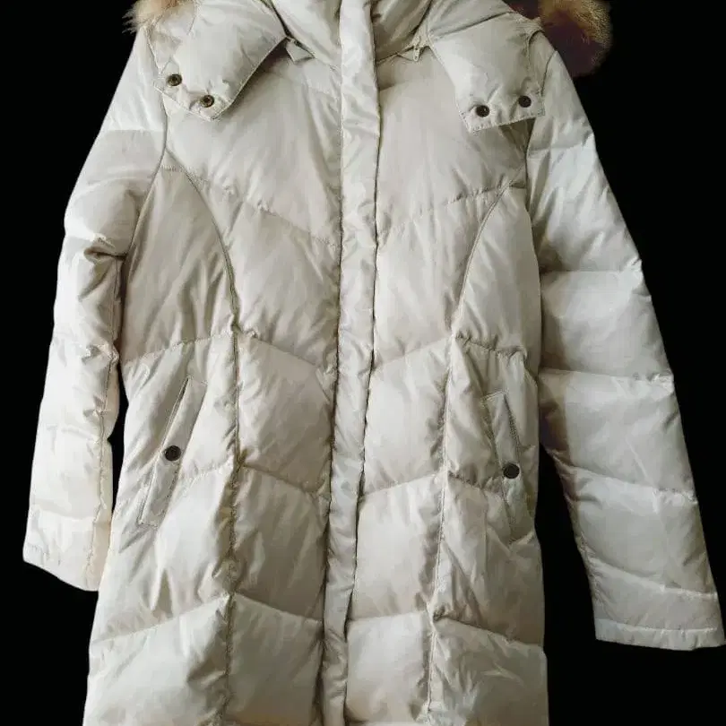 화이트 후드 부착 롱 다운 자켓