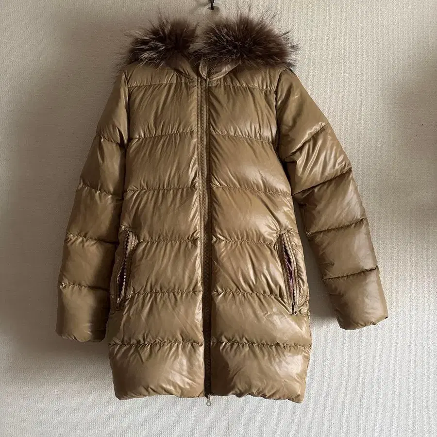 DUVETICA 베이지 다운 자켓 퍼 후드