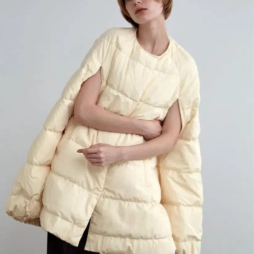 몸을 포근하게 감싸는 둥근 형태가 엘레강트하고 엣지 있는 한 벌입니다. 소매 부분의 깊이는 지퍼로 조절할 수 있으며, 밑단은 드로 코드로 볼륨을 조절할 수 있습니다.