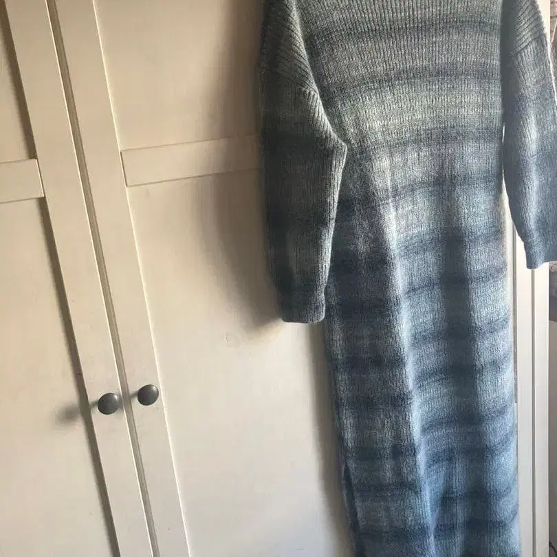Jines 니트 원피스 긴팔 그라데이션 블루 슬릿 모헤어