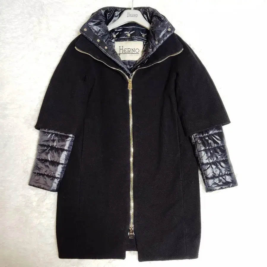HERNO 헬노 다운 코트 롱 코트 맥시 길이 후드 부착 이소재 절개 울 풀 지퍼 38 M 블랙 고급 엘레강트 캐주얼 출퇴근 통학 관혼상제 여성용 여성 중고 구제 의류 겨울 상품 레어템