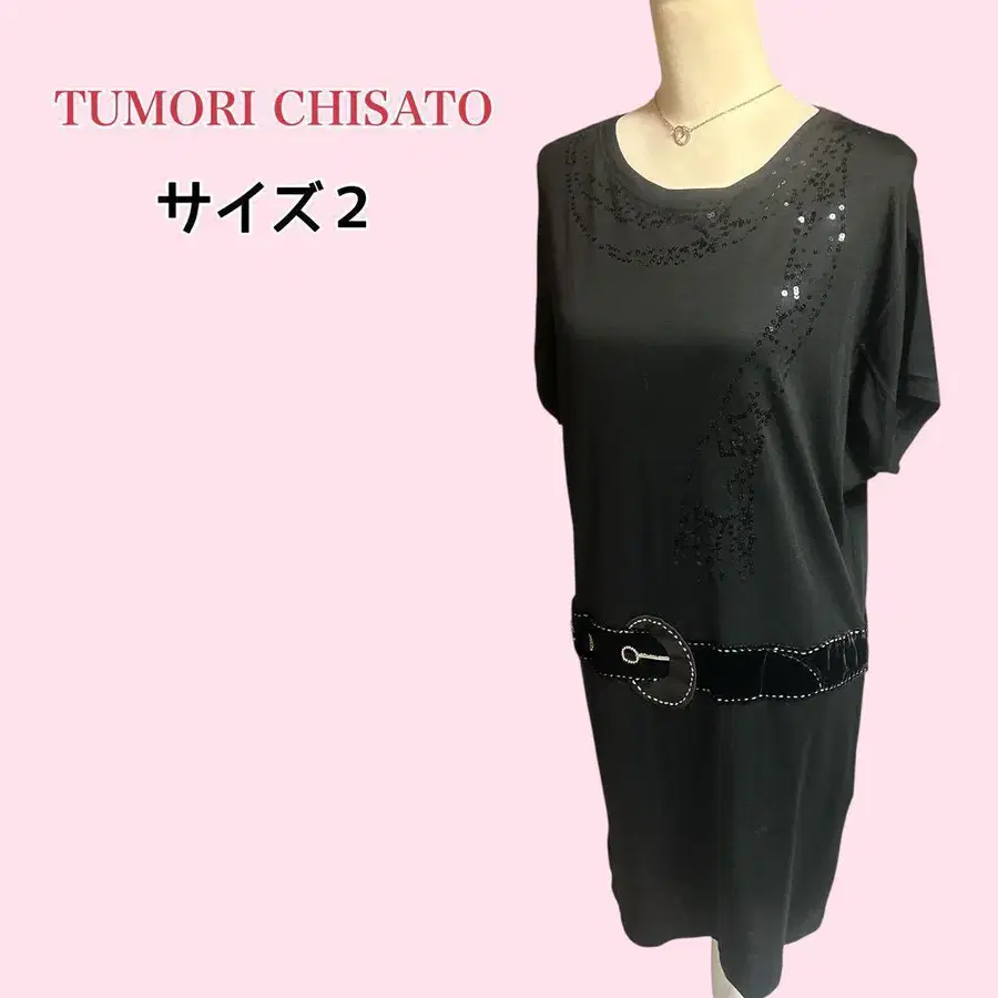 츠모리치사토 무릎 기장 원피스 튜닉 스팽글 벨트 무늬 루즈핏 M