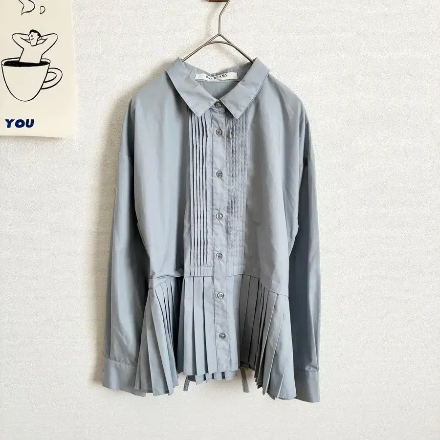 레이빔즈 플리츠 절개 셔츠 블라우스 깔끔한 페미닌