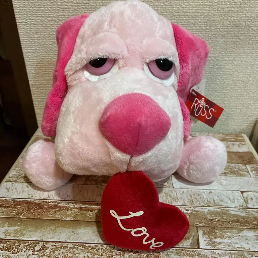 RUSS 핑크 강아지 봉제 인형 하트 포함