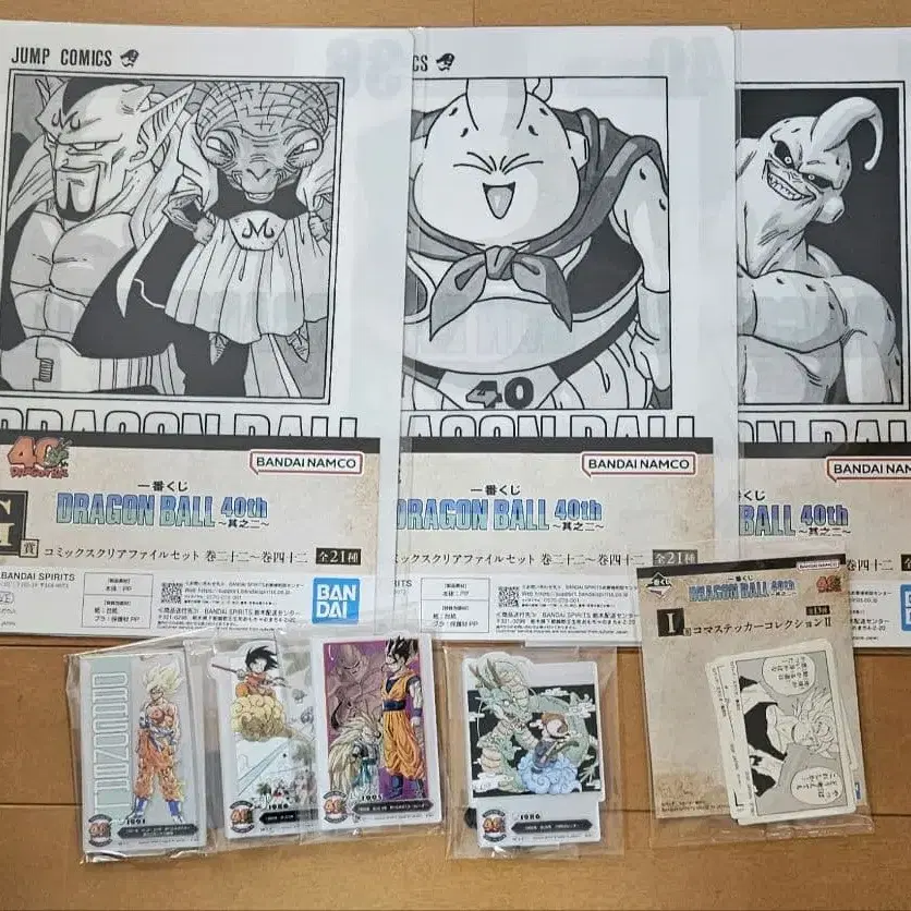 제일복권 DRAGON BALL 40th ~그 두 번째~ F상, G상, I상의 하위상 총 8점 세트입니다. F상 ACLLECT -드래곤볼- ~토리야마 아키라의 세계~Ⅱ 4종 F-2, F-3, F-12, F-19 G상 코믹스 클리어 파일 세트 권 22 ~ 권 42 3종 38, 40, 41권 I상 시계 부품 스티커 컬렉션Ⅱ 1종