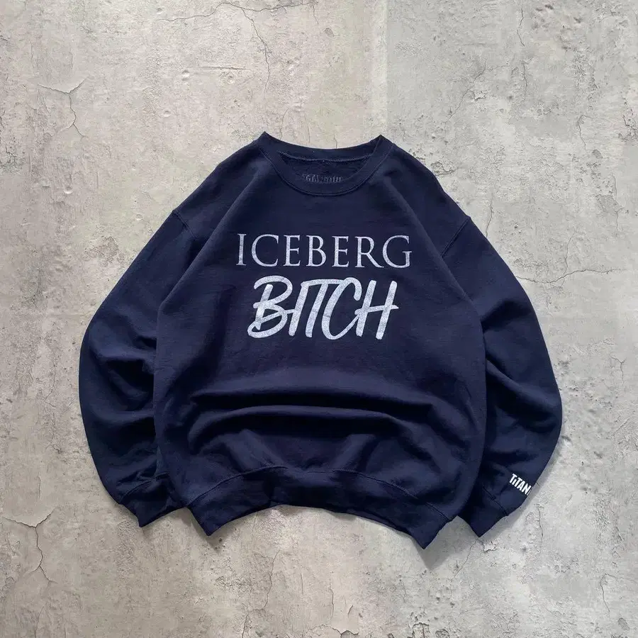 USA 구제 의류 BITCH 프린트 맨투맨 트레이닝복 네이비