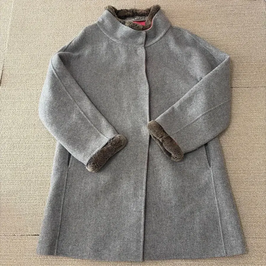 울 그레이 롱 코트 퍼 포함